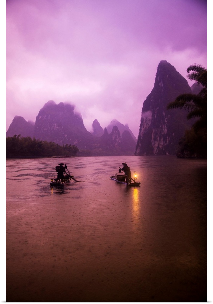 <p>China, Guangxi Zhuang, Xing Ping, Guangxi Zhuang region. Fisherman on the Li River early morning.</p>