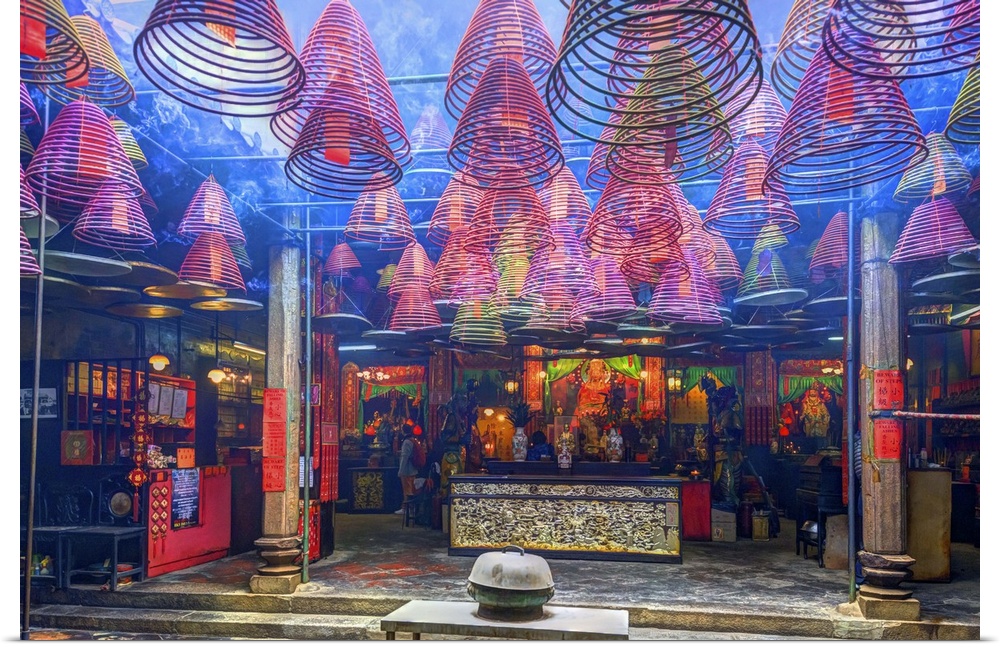 <p>China, Hong Kong, Kowloon, Yau Ma Tei, incense in Tin Hau Temple.</p>