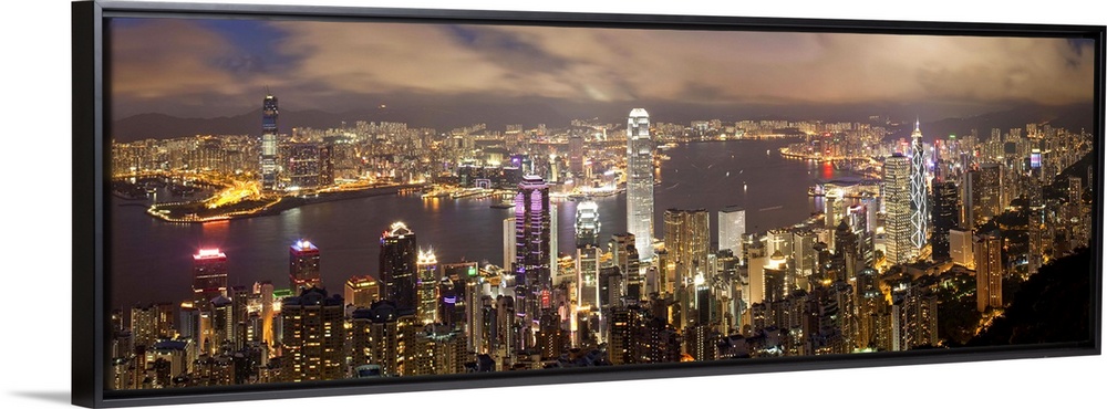 <p>China, Hong Kong, Victoria Peak. View over Hong Kong from Victoria Peak. The illuminated skyline of Central sits below The Peak</p>