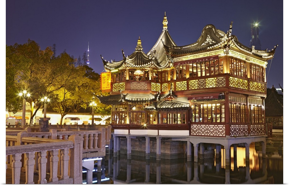 <p>China, Shanghai, Huxinting Teahouse illuminated at night, Yuyuan Gardens.</p>