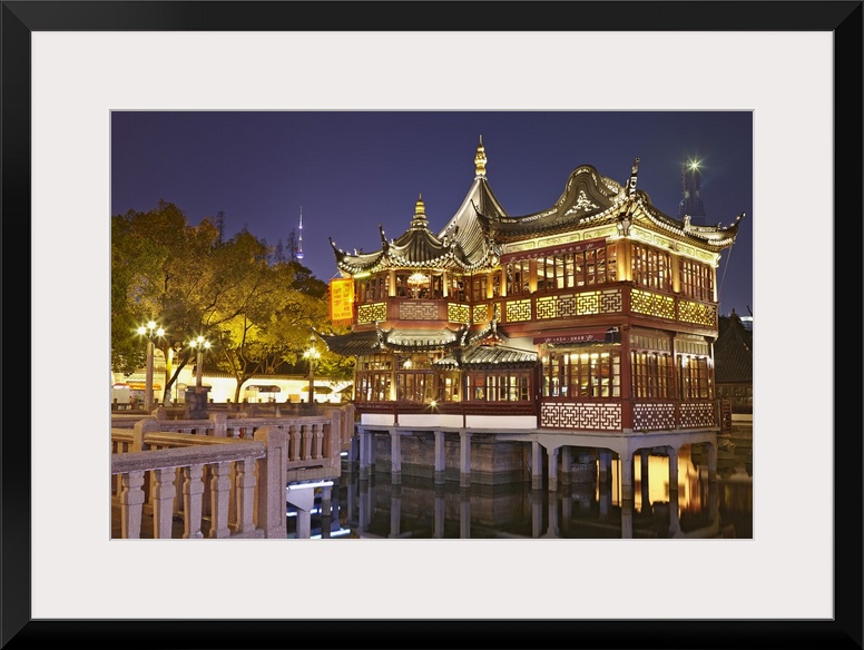 <p>China, Shanghai, Huxinting Teahouse illuminated at night, Yuyuan Gardens.</p>