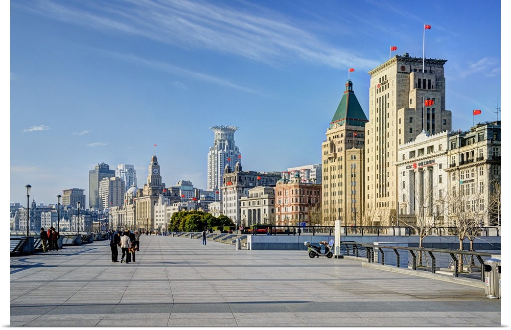 <p>China, Shanghai, The Bund, The promenade in the morning, Peace Hotel on the right.</p>