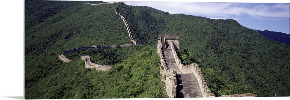 <p>Panoramic view of the Great Wall of China which spans over 4,000 miles, making it the longest man-made structure ever built.</p>