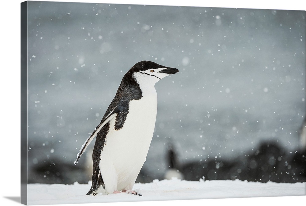 <p>Chinstrap Penguin (Pygoscelis antarctica) in a snowfall, Half Moon Island, South Shetland Islands, Antarctica.</p>