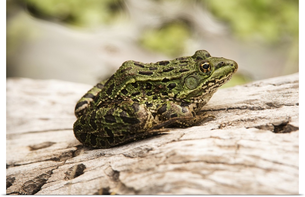 <p>Chiricahua Leopard Frog (Rana chiricahuensis), a threatened species, sunning on a log near Cave Creek in the Chiricahua Mountains near Portal; Arizona, United States of America.</p>