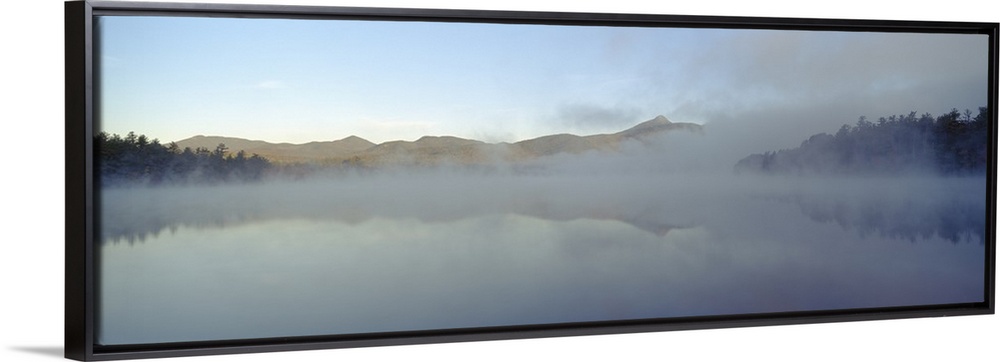 <p>Wall art for the home or office this panoramic photograph shows mist rising off a New England lake.</p>