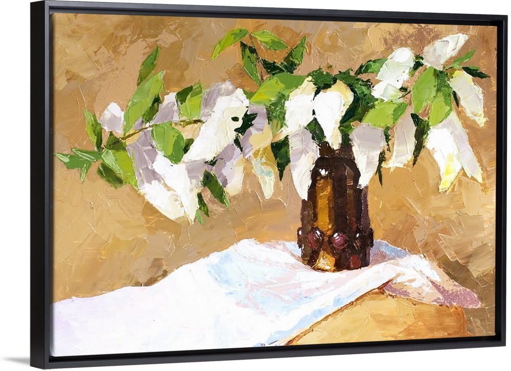<p>Originally an oil painting of chokecherry flowers in a brown vase.</p>
