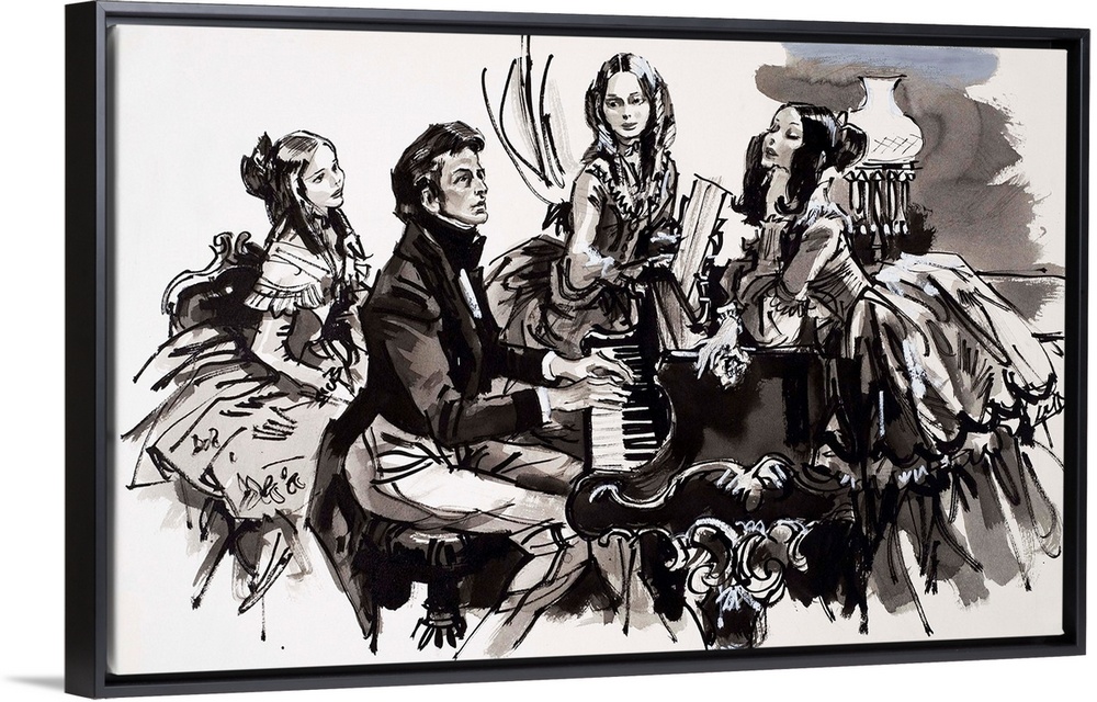 Art Black and White Wall Art Illustrations Painting People English School Vintage Art
