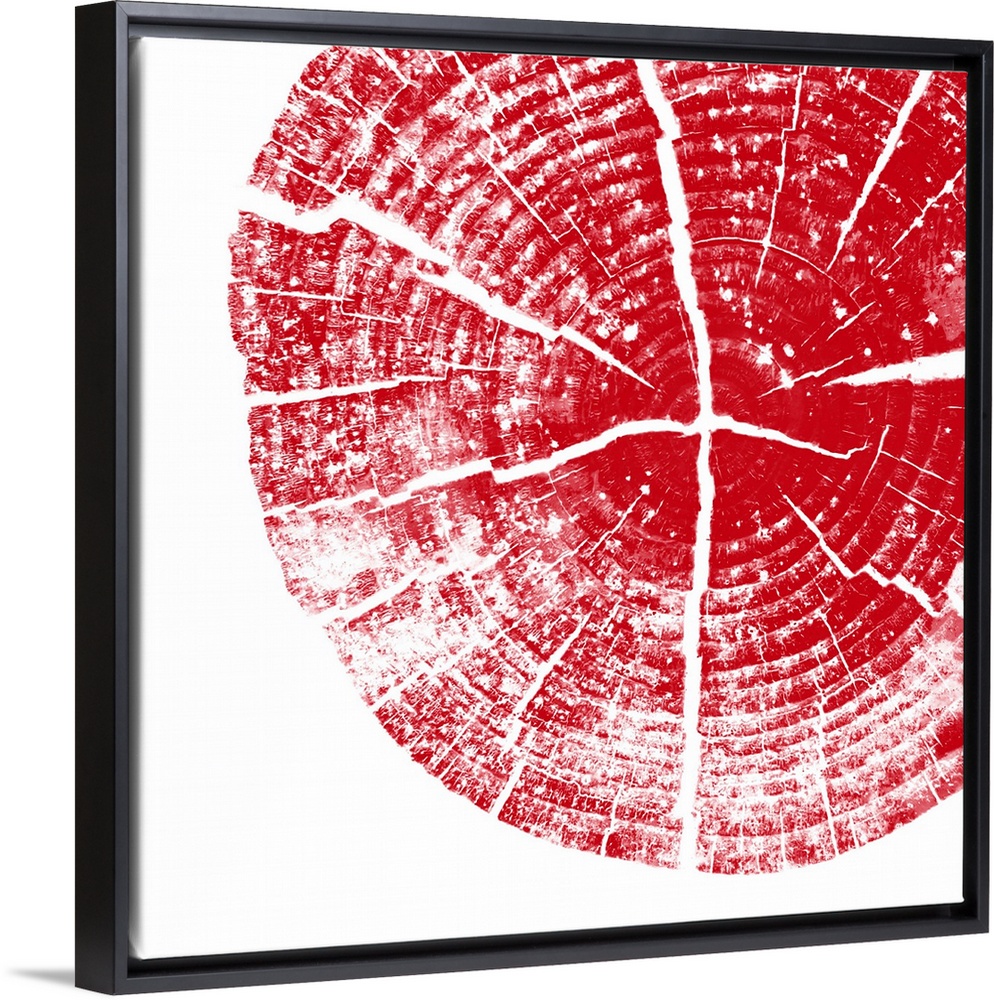 <p>Cross-section of a tree trunk showing the rings in the wood in red.</p>