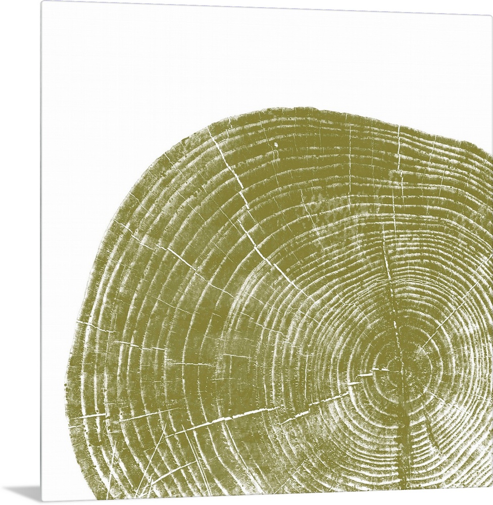 <p>Cross-section of a tree trunk showing the rings in the wood in green.</p>