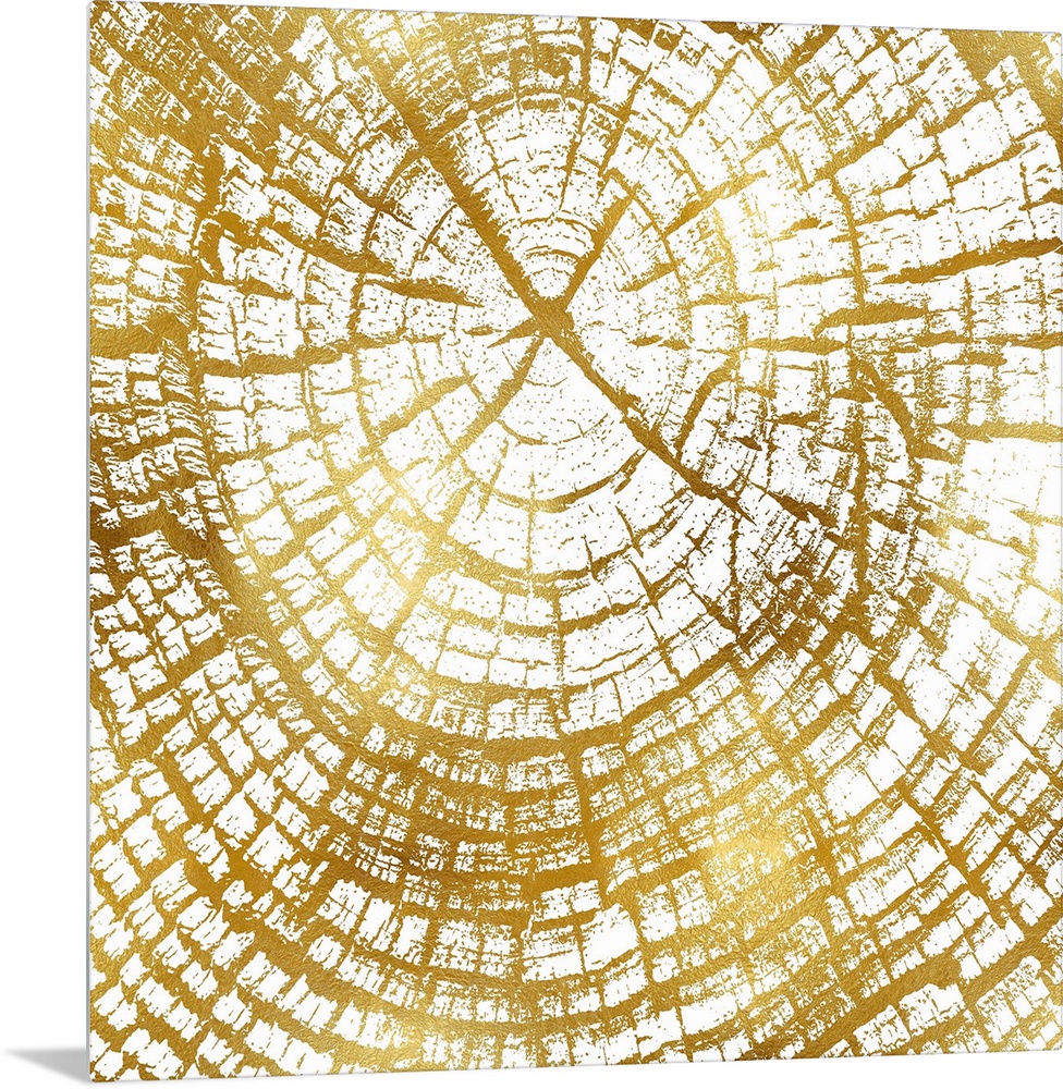 <p>Square decor with tree stump rings in gold and white.</p>