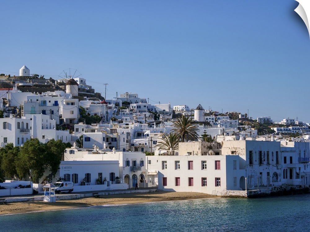 <p>Chora Waterfront, Mykonos Town, Mykonos Island, Cyclades, Greek Islands, Greece, Europe</p>