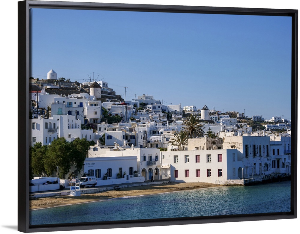 <p>Chora Waterfront, Mykonos Town, Mykonos Island, Cyclades, Greek Islands, Greece, Europe</p>
