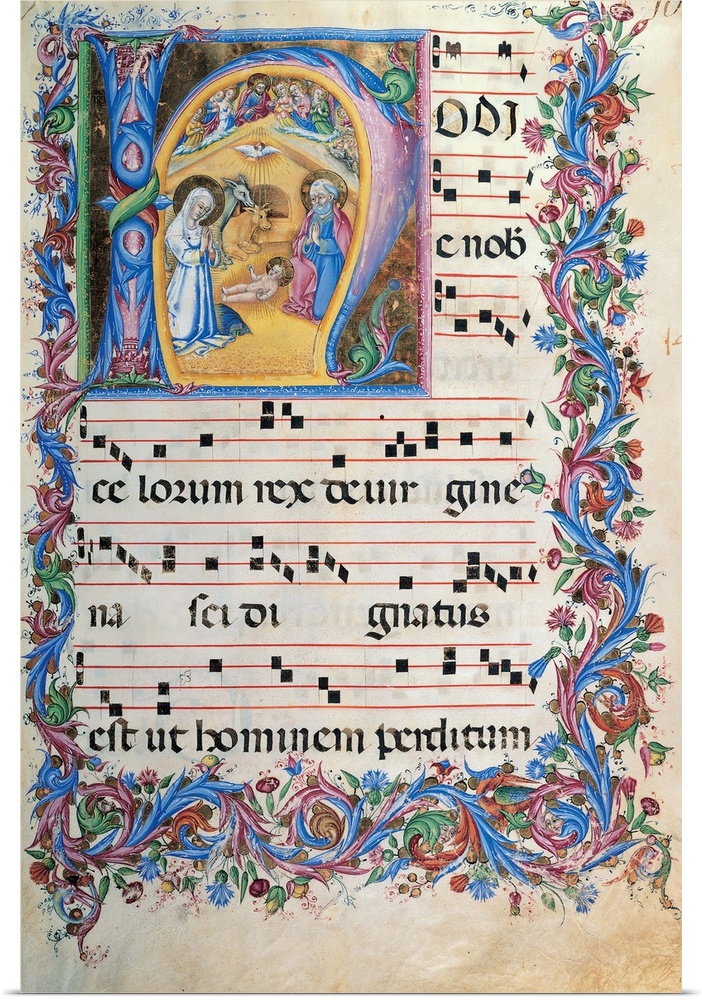<p>Anonymous Sienese painter, Day hours and night hours antiphonary from the first Saturday of Advent to the IV Sunday after Epiphany, 15th Century, illuminated manuscript, Italy, Tuscany, Siena, Osservanza Basilica, (407258) Everett Collection\Mondadori Por</p>