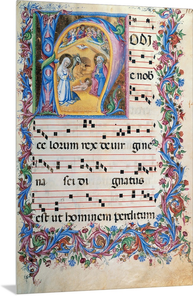 <p>Anonymous Sienese painter, Day hours and night hours antiphonary from the first Saturday of Advent to the IV Sunday after Epiphany, 15th Century, illuminated manuscript, Italy, Tuscany, Siena, Osservanza Basilica, (407258) Everett Collection\Mondadori Por</p>