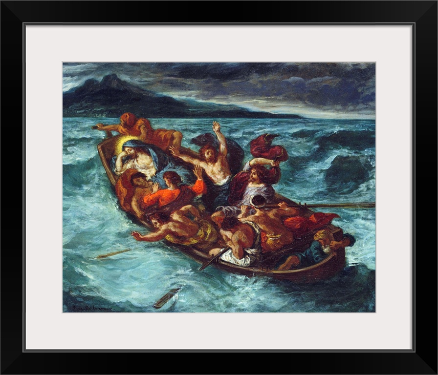 <p>Delacroix painted at least six versions of this New Testament lesson in faith: when awakened by his terrified disciples, Christ scolded them for their lack of trust in Providence. In the earlier works, the seascape is more prominent; in the later ones, as here, Christ's bark occupies a more significant place. After Vincent van Gogh saw this version in Paris in 1886, he wrote, Christ's boat-I'm talking about the blue and green sketch with touches of purple and red and a little lemon yellow for the halo, the aureole-speak a symbolic language through color itself.</p>