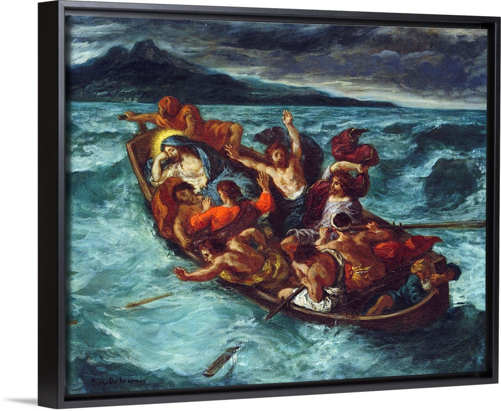 <p>Delacroix painted at least six versions of this New Testament lesson in faith: when awakened by his terrified disciples, Christ scolded them for their lack of trust in Providence. In the earlier works, the seascape is more prominent; in the later ones, as here, Christ's bark occupies a more significant place. After Vincent van Gogh saw this version in Paris in 1886, he wrote, Christ's boat-I'm talking about the blue and green sketch with touches of purple and red and a little lemon yellow for the halo, the aureole-speak a symbolic language through color itself.</p>