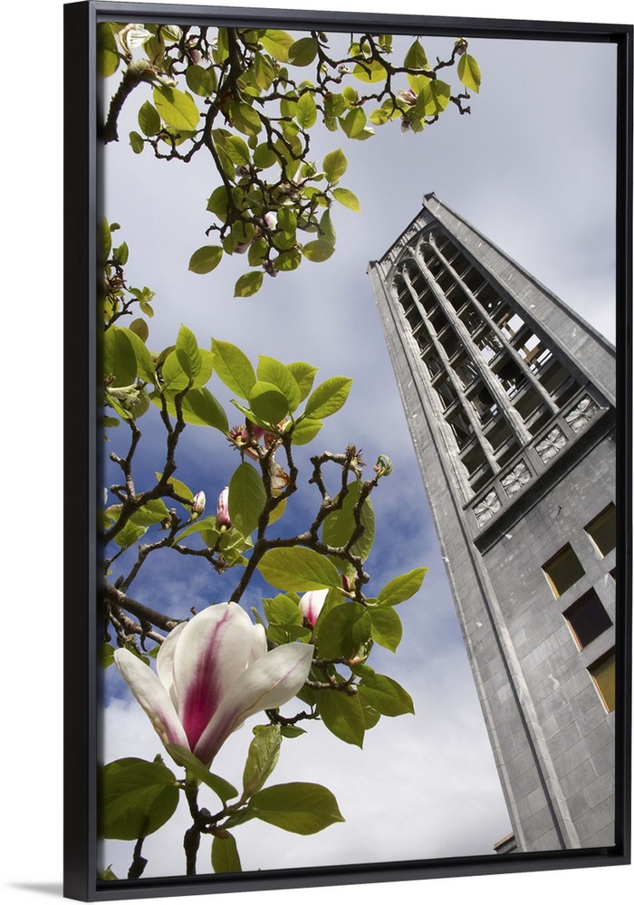 <p>Christ Church Cathedral and Magnolia Flower, Nelson, South Island, New Zealand</p>