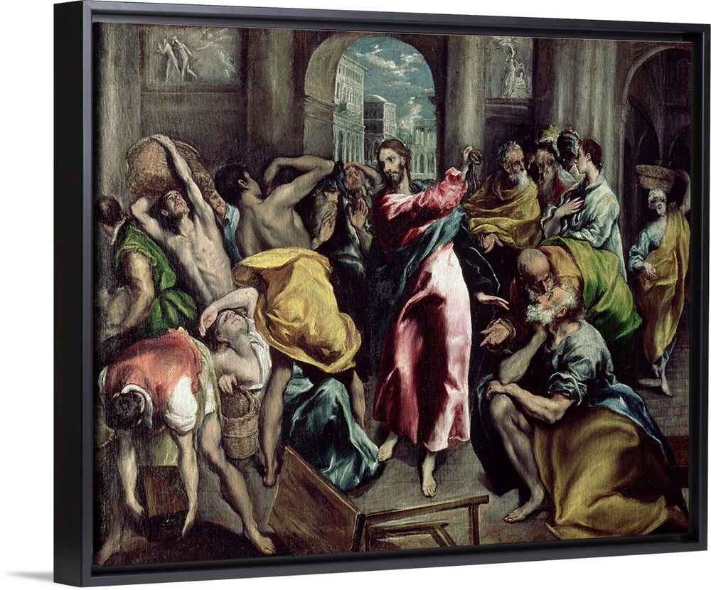 <p>BAL29580 Christ Driving the Traders from the Temple, c.1600 (oil on canvas) (for detail see 26048) by Greco, El (Domenico Theotocopuli) (1541-1614); 106.3x129.7 cm; National Gallery, London, UK; Greek, out of copyright</p>
