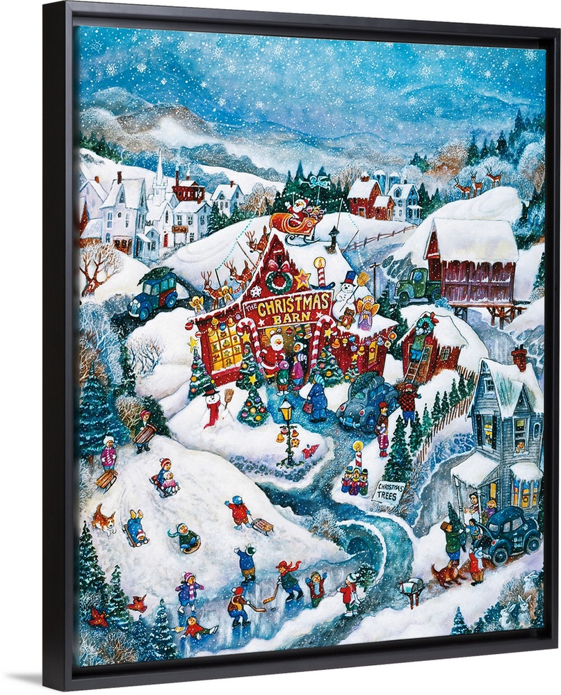 Art Bill Bell Blue Wall Art Decorative Art Four Seasons Winter Holidays Christmas Landscapes Painting