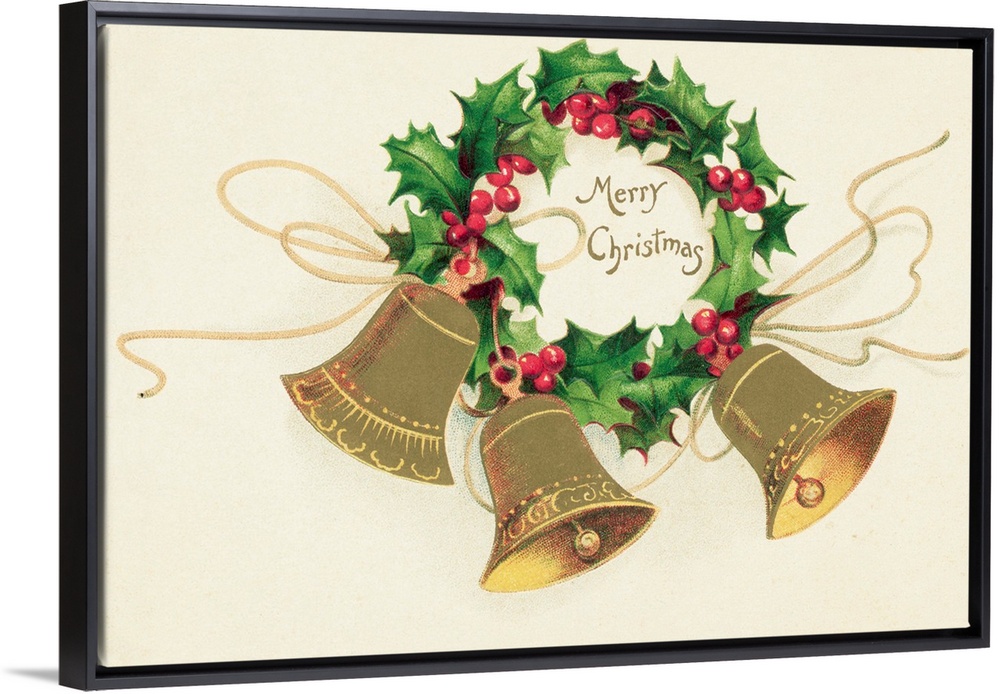<p>Christmas postcard: A trio of bells hang from a wreath of holly surrounding a caption reading Merry Christmas. Undated postcard postmarked 12/22/1900.</p>