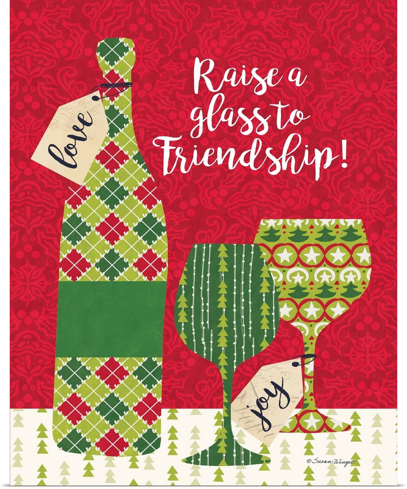 <p>Bright Christmas colors and wine motifs say a big Cheers to the Holiday!</p>