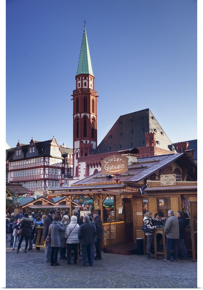 <p>Christmas fair at Roemer, Roemerberg square, Nikolaikirche church, Frankfurt, Hesse, Germany, Europe</p>