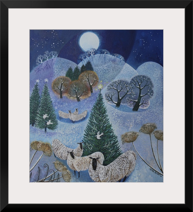 Art Blue Wall Art Contemporary Art Blue and White Christmas Lisa Graa Jensen Landscapes Painting Wildlife Sheep