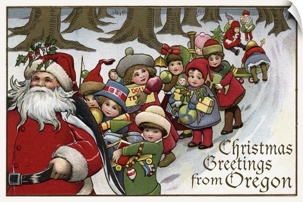 Art Christmas Santa Claus Lantern Press Oregon