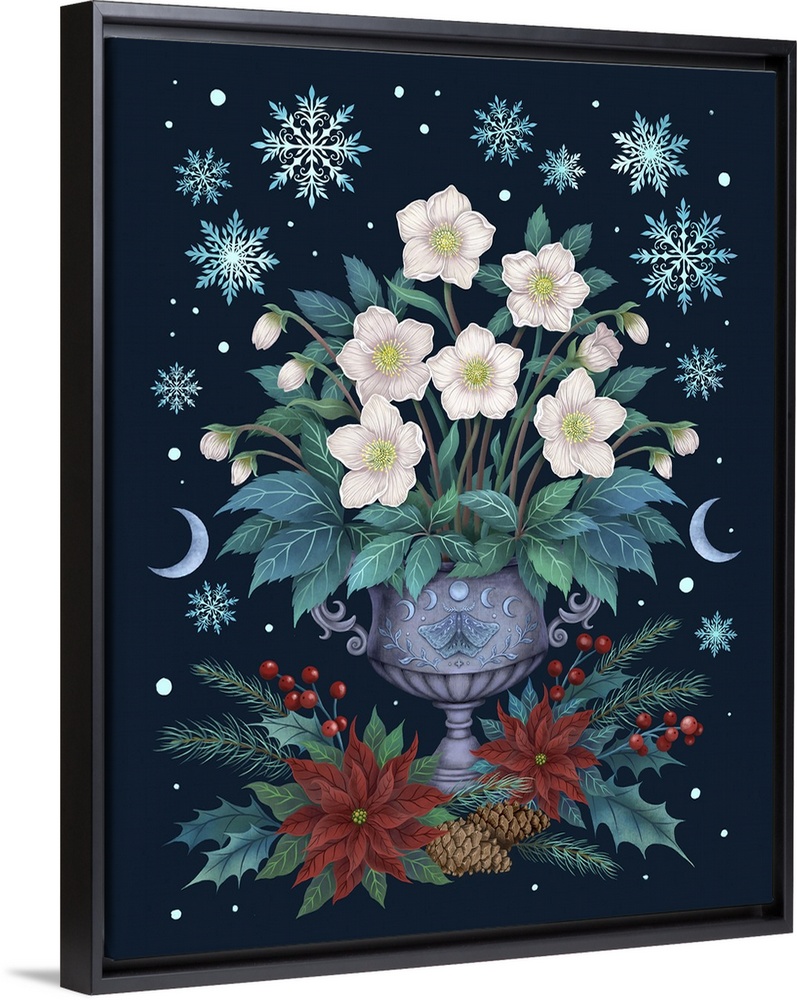 Art Blue Wall Art Blue and White Christmas Decorative Art Episodic Drawing Florals Graphic Art Holidays Christmas