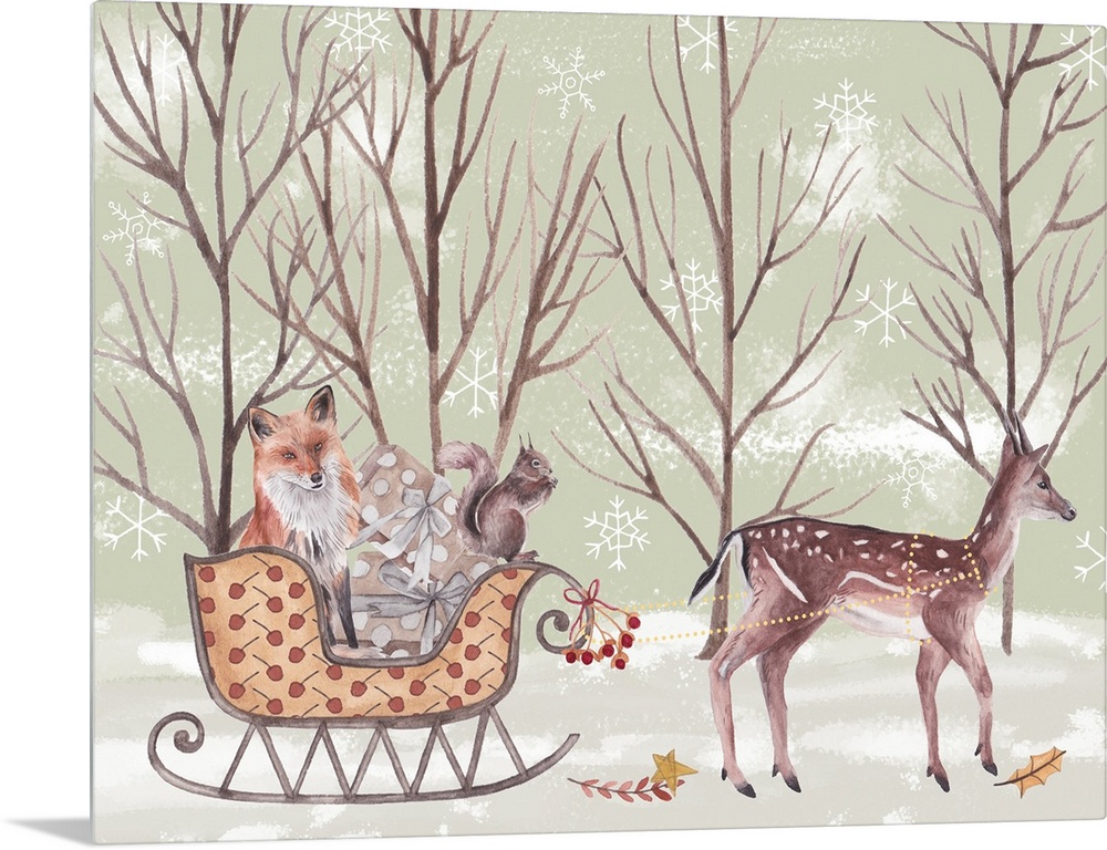 Art Decorative Art Green Wall Art Holidays Christmas Christmas Animals Painting Melissa Wang Wildlife Deer