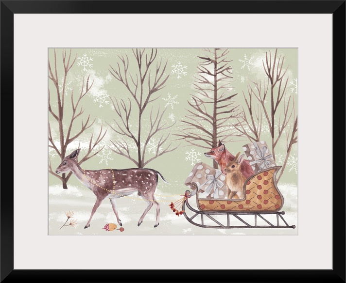 Art Serene Holiday Decorative Art Green Wall Art Holidays Christmas Christmas Animals Melissa Wang Wildlife Deer