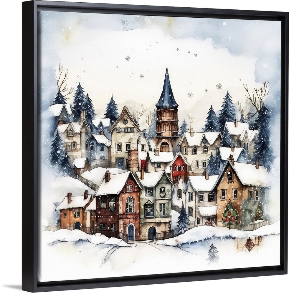 Architecture Houses Art Contemporary Art Winter Holidays Christmas Landscapes Snowscapes Villages Painting The Golden Valley Watercolor