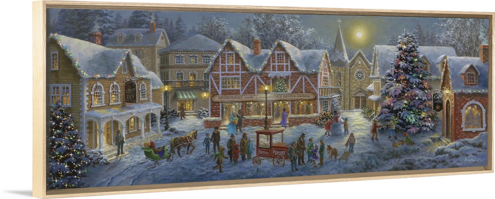 <p>Painting of village scene featuring a large Christmas tree. Product is a painting reproduction only, and does not contain actual lights.</p>