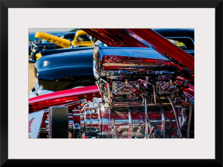 <p>Chrome-plated hot rod engine at antique car show, cape ann, gloucester, massachusetts, USA.</p>
