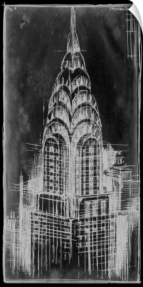Skyscraper Art Transitional Black and White Wall Art Black and White Decorative Art Drawing Ethan Harper New York New York City Chrysler Building