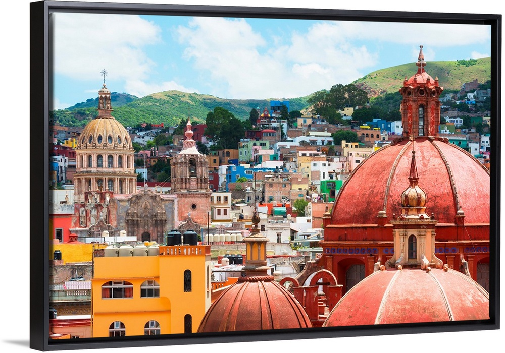 <p>Cityscape photograph of colorful buildings and several church domes in Guanajuato, Mexico. From the Viva Mexico Collection.</p>