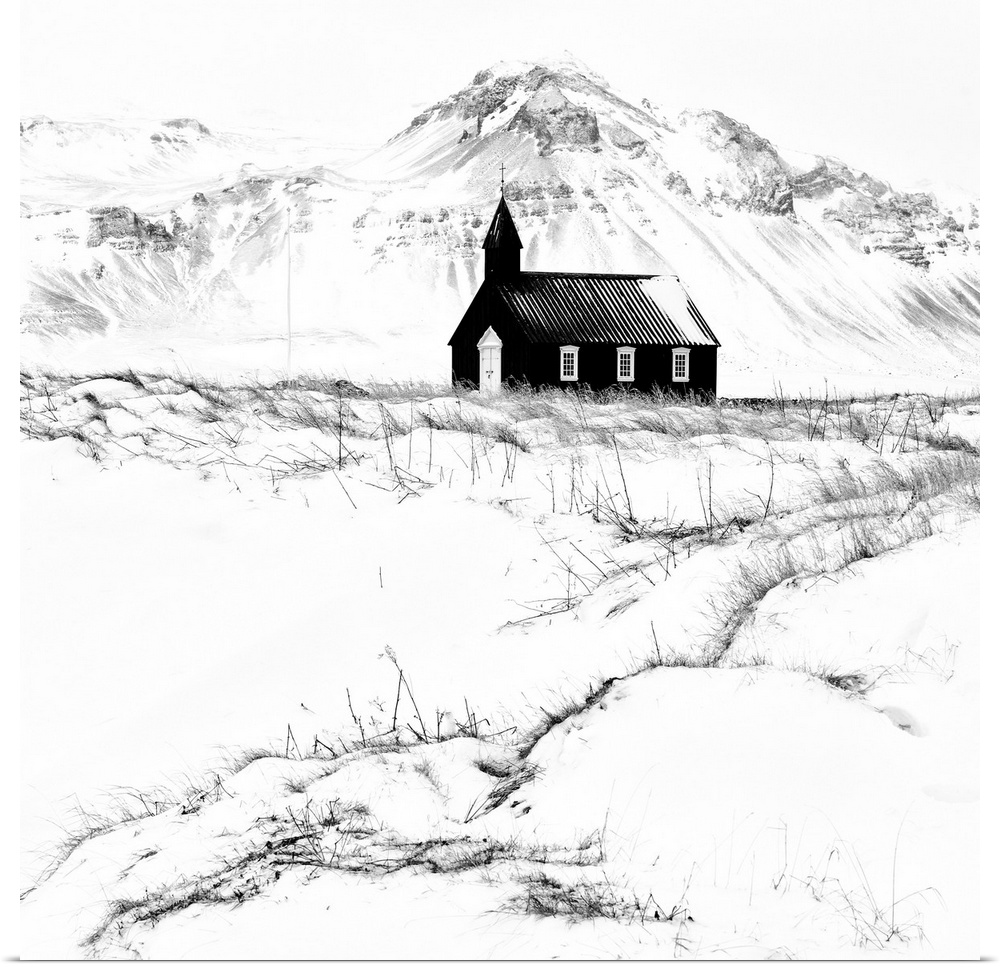 <p>Church in snowy winter landscape, Snaefellsnes Peninsula, West Iceland.</p>