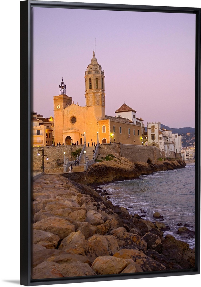 <p>SPAIN. Sitges. Baluard Square and Church of Sant Bartomeu and Santa Tecla. Baroque art. -</p>