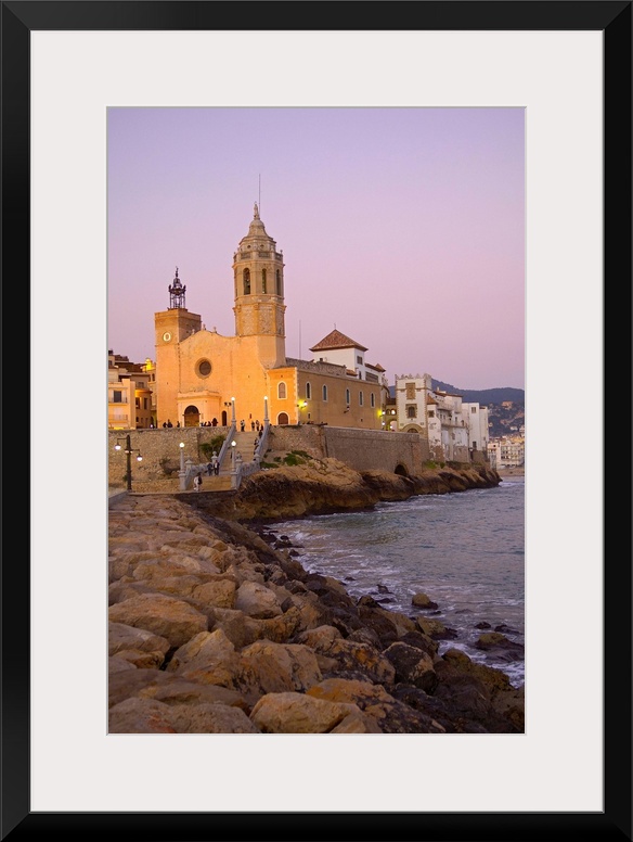 <p>SPAIN. Sitges. Baluard Square and Church of Sant Bartomeu and Santa Tecla. Baroque art. -</p>