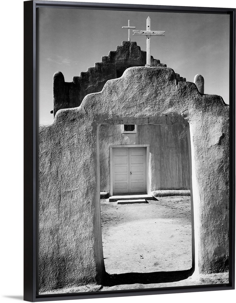 <p>Church, Taos Pueblo, New Mexico, 1942, full front view of entrance.</p>