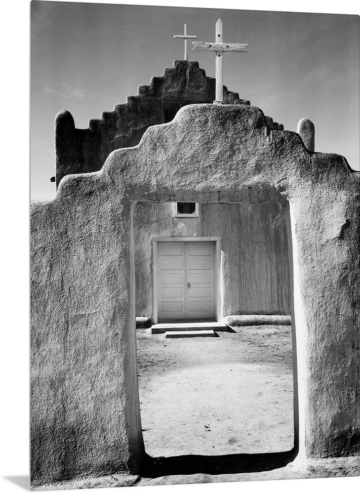 <p>Church, Taos Pueblo, New Mexico, 1942, full front view of entrance.</p>