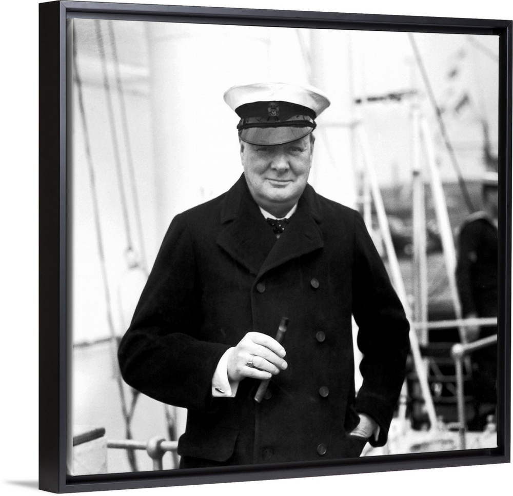 <p>English statesman Sir Winston Churchill on board HMS Enchantress during a review of the fleet by King George VI at Spithead</p>