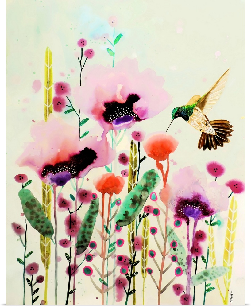 Art Contemporary Art Sylvie Demers Florals Painting Watercolor Wildlife Bird Hummingbird