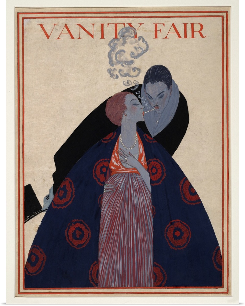 <p>Cigarette couple. Vanity Fair artwork of a couple lighting cigarettes. The artwork is by the French poster designer and illustrator Georges Lepape (1887-1971). It appeared in the December 1919 issue of this US magazine which was published between 1913 and 1936.</p>