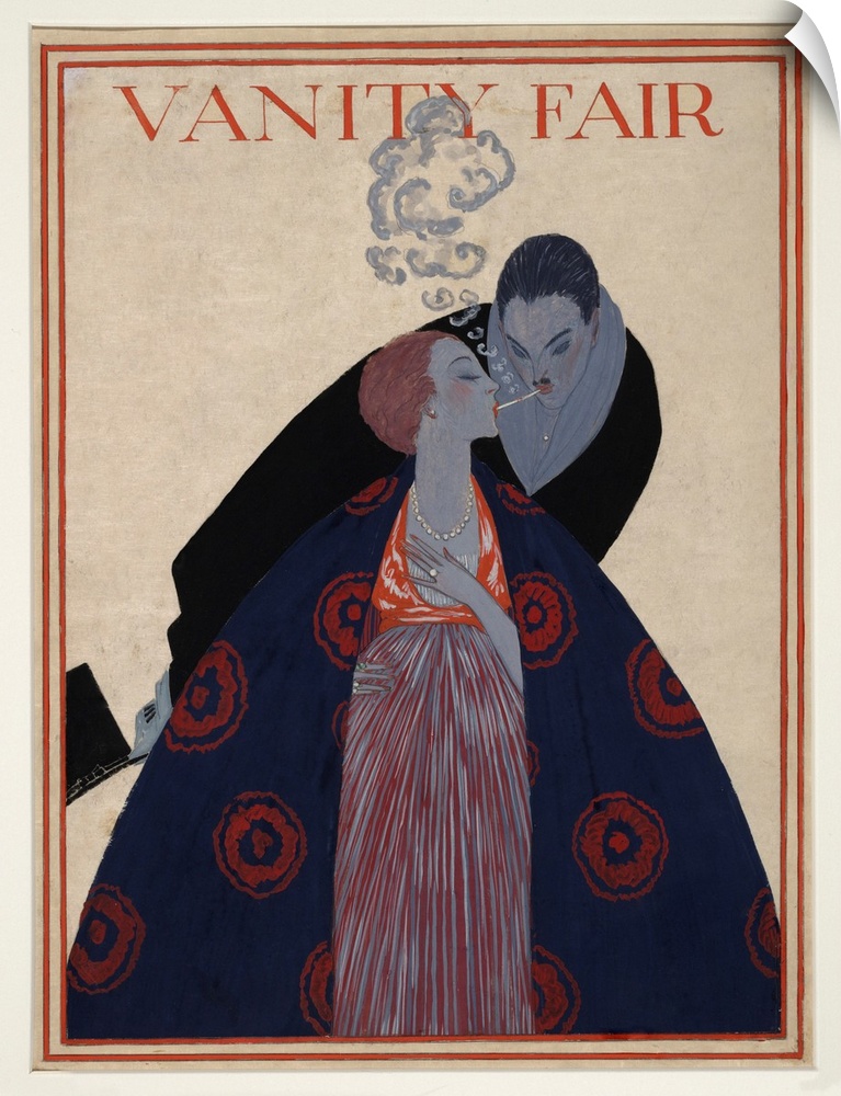 <p>Cigarette couple. Vanity Fair artwork of a couple lighting cigarettes. The artwork is by the French poster designer and illustrator Georges Lepape (1887-1971). It appeared in the December 1919 issue of this US magazine which was published between 1913 and 1936.</p>