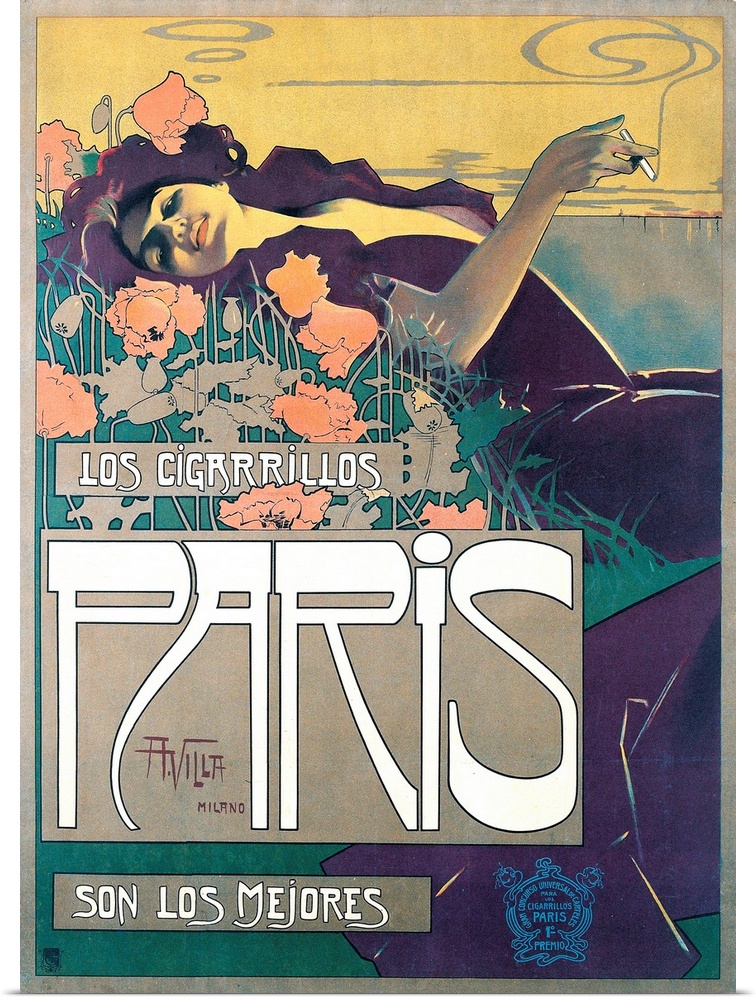 <p>Cigarrillos Paris son los Mejores (Paris cigarillos are the best!) poster by Aleardo Villa (Spanish, 1865-1906), 1901, color lithograph, 50x 37 in, private collection.</p>