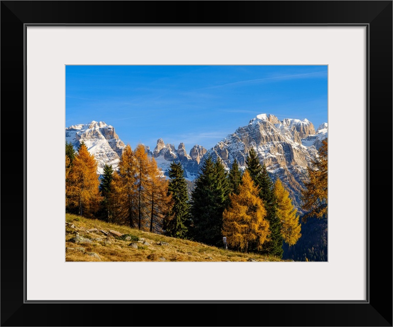 <p>Cima Brenta and Cima Tosa. View of the Dolomiti di Brenta from Val Rendena in the Parco Naturale Adamello Brenta, part of UNESCO World Heritage Site. Dolomites, in the province of Trentino in Italy.</p>