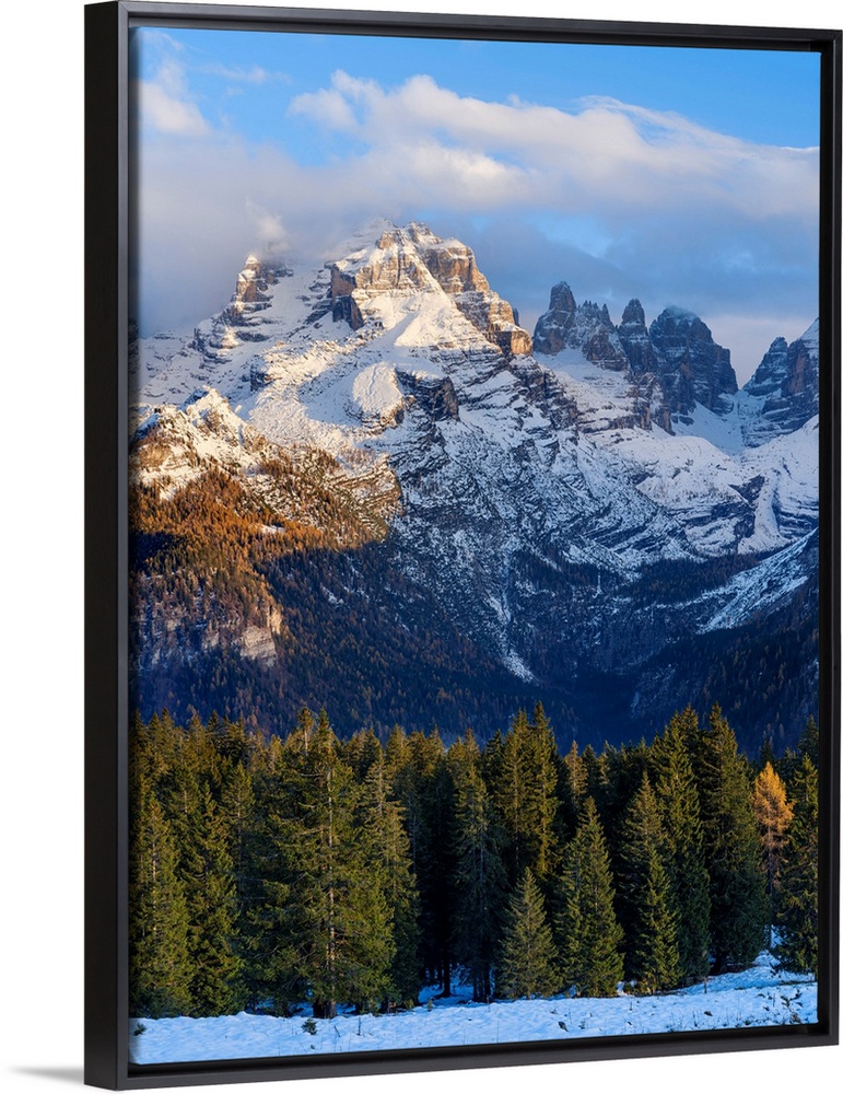 <p>Cima Brenta. View of the Dolomiti di Brenta from Val Rendena in the Parco Naturale Adamello Brenta, part of UNESCO World Heritage Site. Dolomites, in the province of Trentino in Italy.</p>