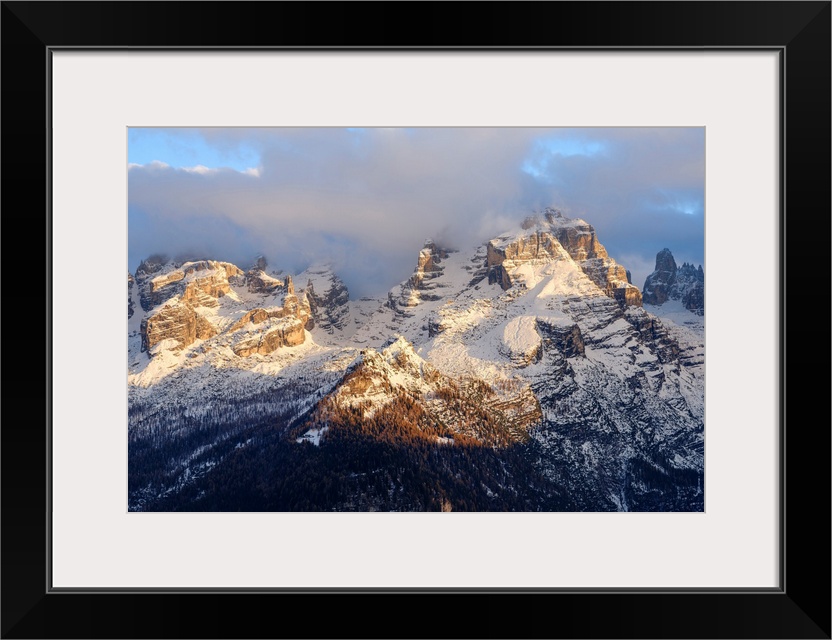 <p>Cima Brenta. View of the Dolomiti di Brenta from Val Rendena in the Parco Naturale Adamello Brenta, part of UNESCO World Heritage Site. Dolomites, in the province of Trentino in Italy.</p>